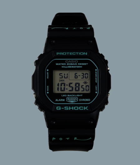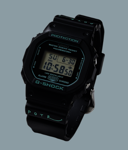 2026年に登場したG-SHOCK × POTR DW-5600は、カシオの定番スクエアモデル「DW-5600UE-1JF」をベースに、吉田カバンのライフスタイルブランドPOTRのエッセンスを落とし込んだコラボ限定モデルです。