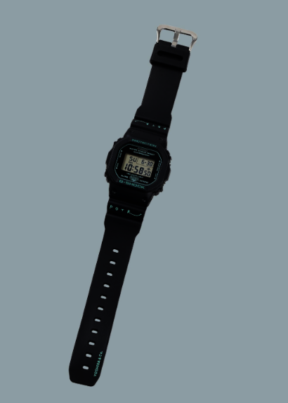 ブラックを基調に、インデックスやボタン周りへターコイズブルーを差し色として配置。控えめながらも確実に「普通のDW-5600とは違う」と分かる仕上がりです。
