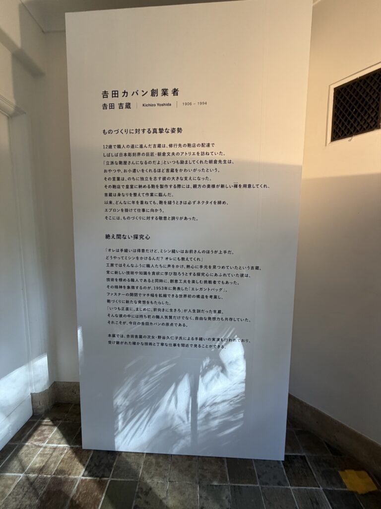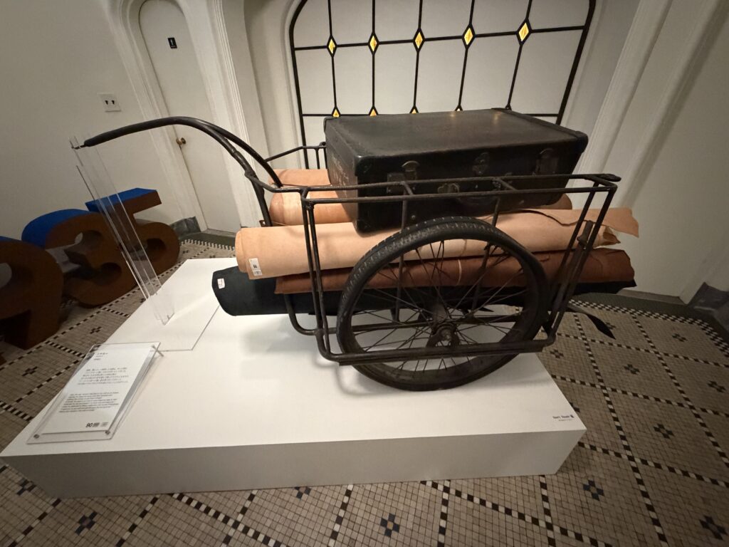 戦後(1946年)自身が製作した鞄をこのリヤカーを引いて売り歩いていたそうです。吉田カバンってここから始まったんですね。